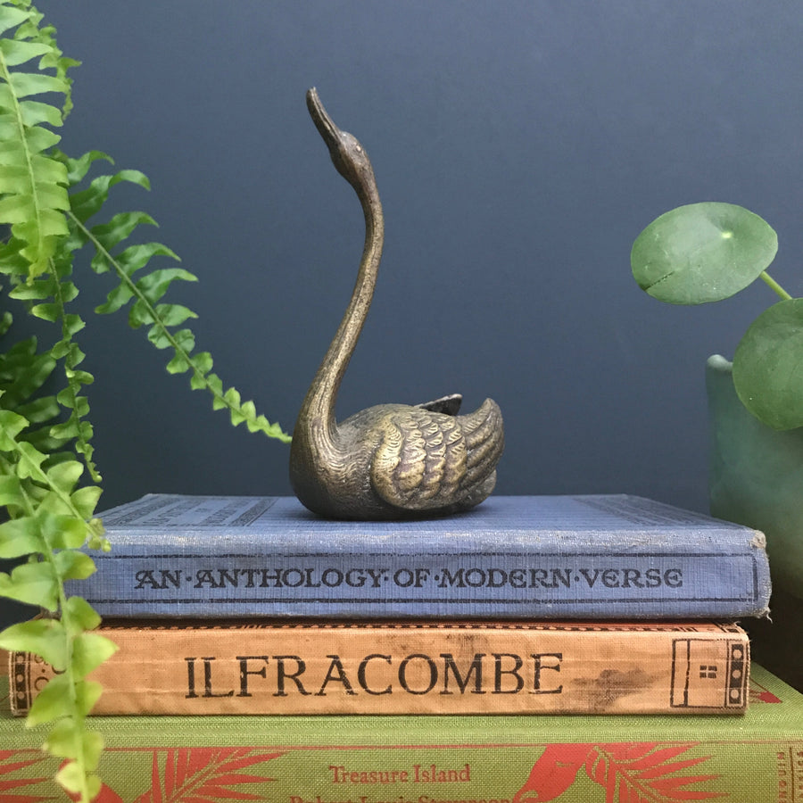 A beautiful petite vintage brass swan with lovely elegant proportions and detailing. The perfect accessory to add a pop of gold to your interior styling!