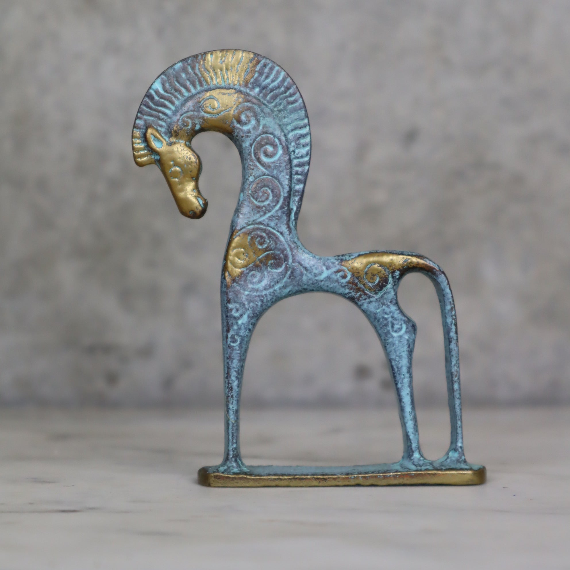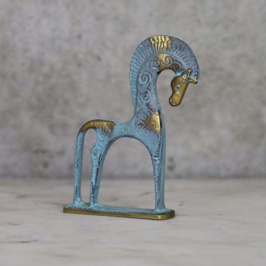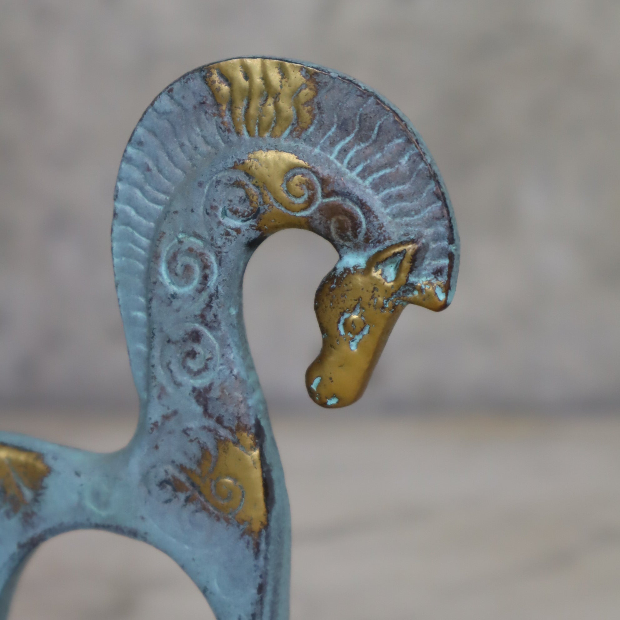 A striking ornamental vintage bronze horse - We just love the elegant proportions, greeny/blue patina and beautiful pattern featured on this stunning figure.