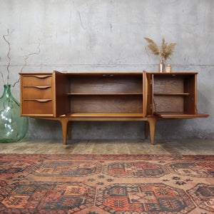 A scarcely seen, Mid Century, teak sideboard manufactured by Jentique of Great Britain.
