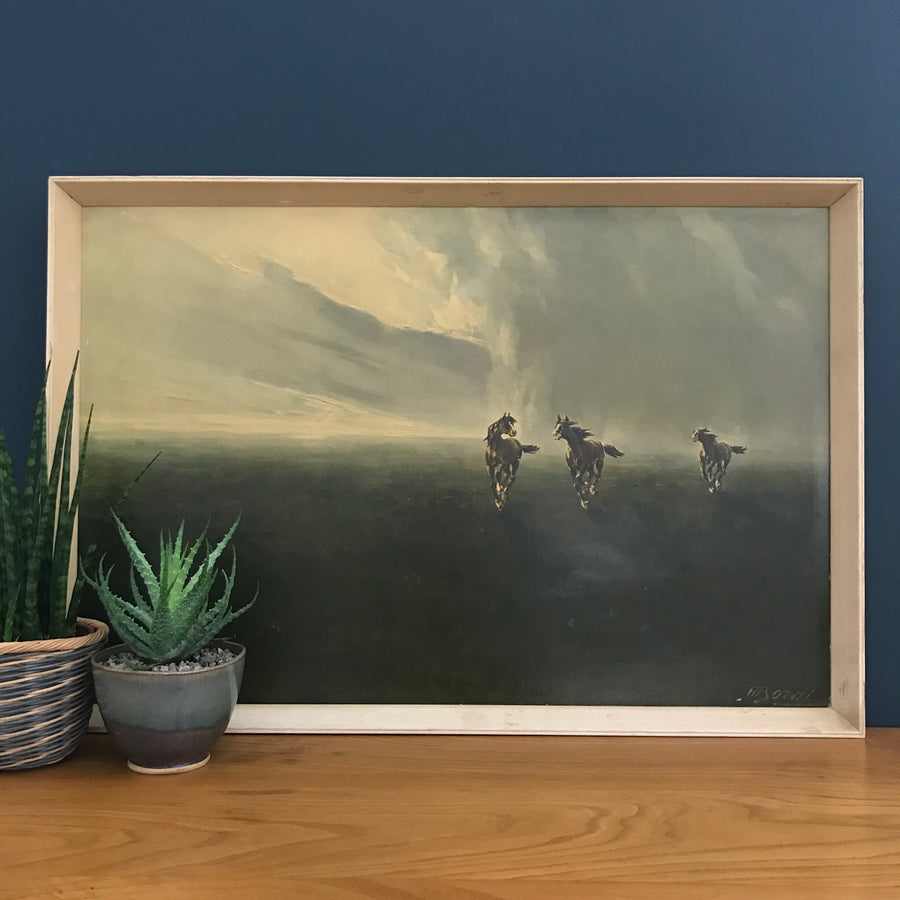 1960s Vintage Framed 'Horses in the Clouds' Print