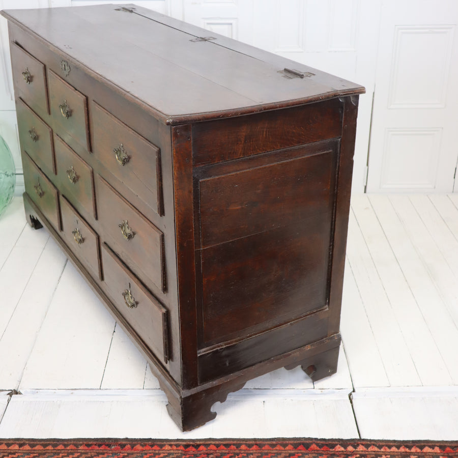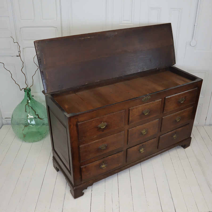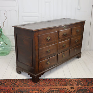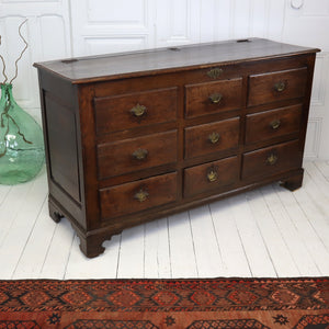 A stunning Antique Oak Mule Chest with nine drawers and original brass handles.