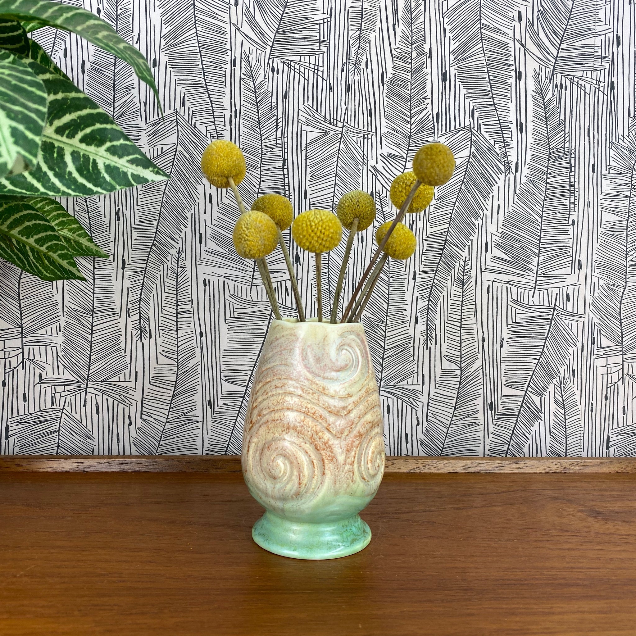 A beautiful Art Deco vase by SylvaC featuring beautiful colours with a swirl pattern.