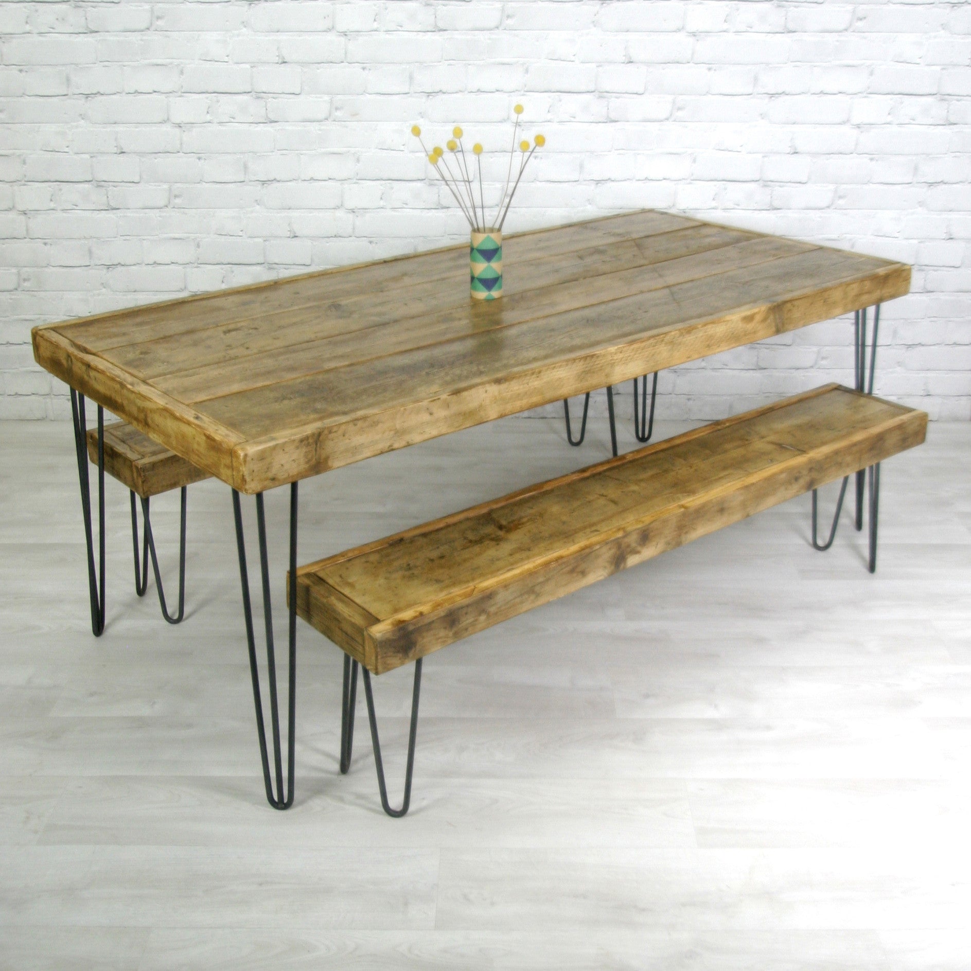 1 x Hairpin Dining table and matching bench (to fit table dimensions below) and 4 x church chairs