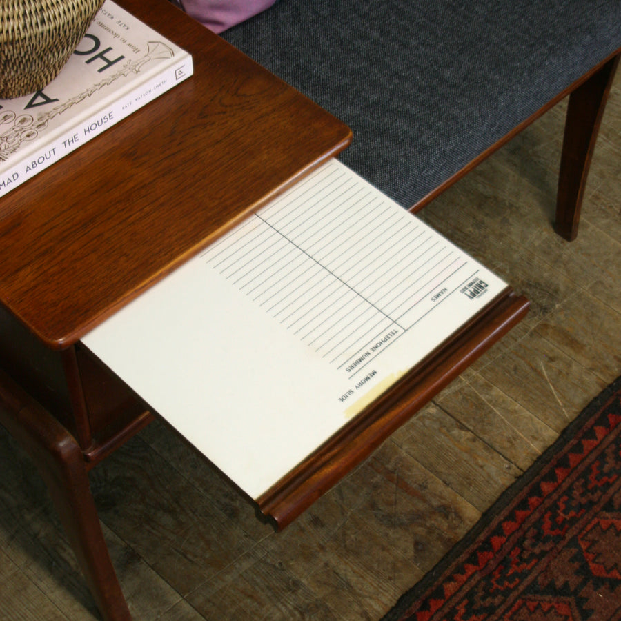 This iconic piece has a lovely teak framework and drop down storage making it very practical for storing keys, notebooks etc. Great in hallways for a quick rest whilst taking your shoes off!