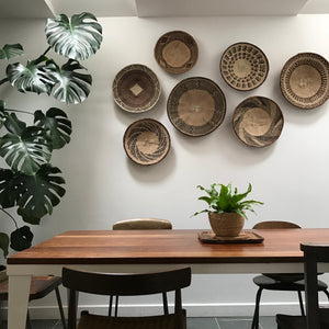 Very boho, with a natural aesthetic, these handcrafted African baskets look stunning when displayed on shelves among other decorative pieces. They make a beautiful piece of wall art and can be hung as singles or in a group to form a stunning natural feature.