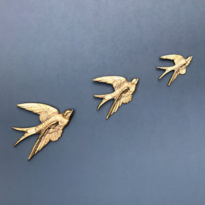 A lovely, decorative trio of vintage brass swallows that look particularly stunning when they hit the light. The perfect way to add some gold tones to your interior styling.