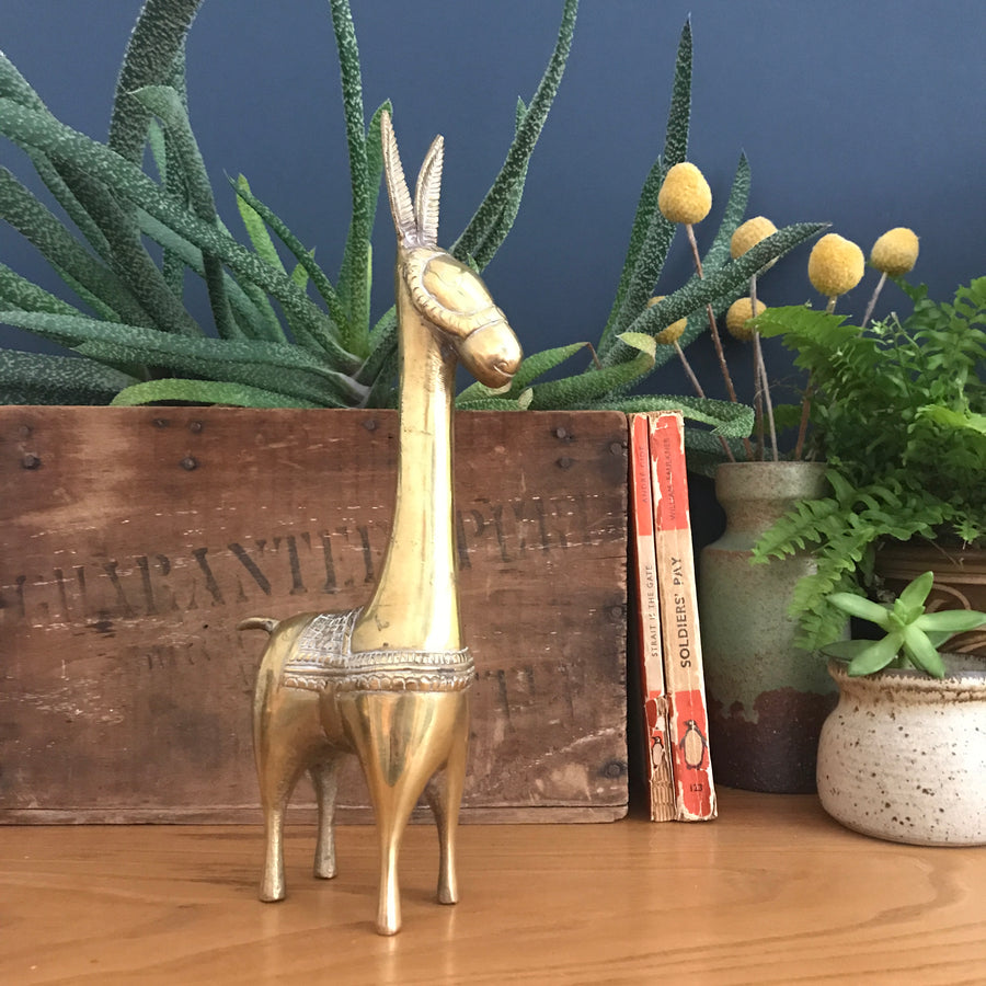 A lovely decorative Mid Century brass donkey, the only one we've ever come across, and the perfect accessory to place on your vintage furniture or shelf to add that Hollywood Regency vibe!