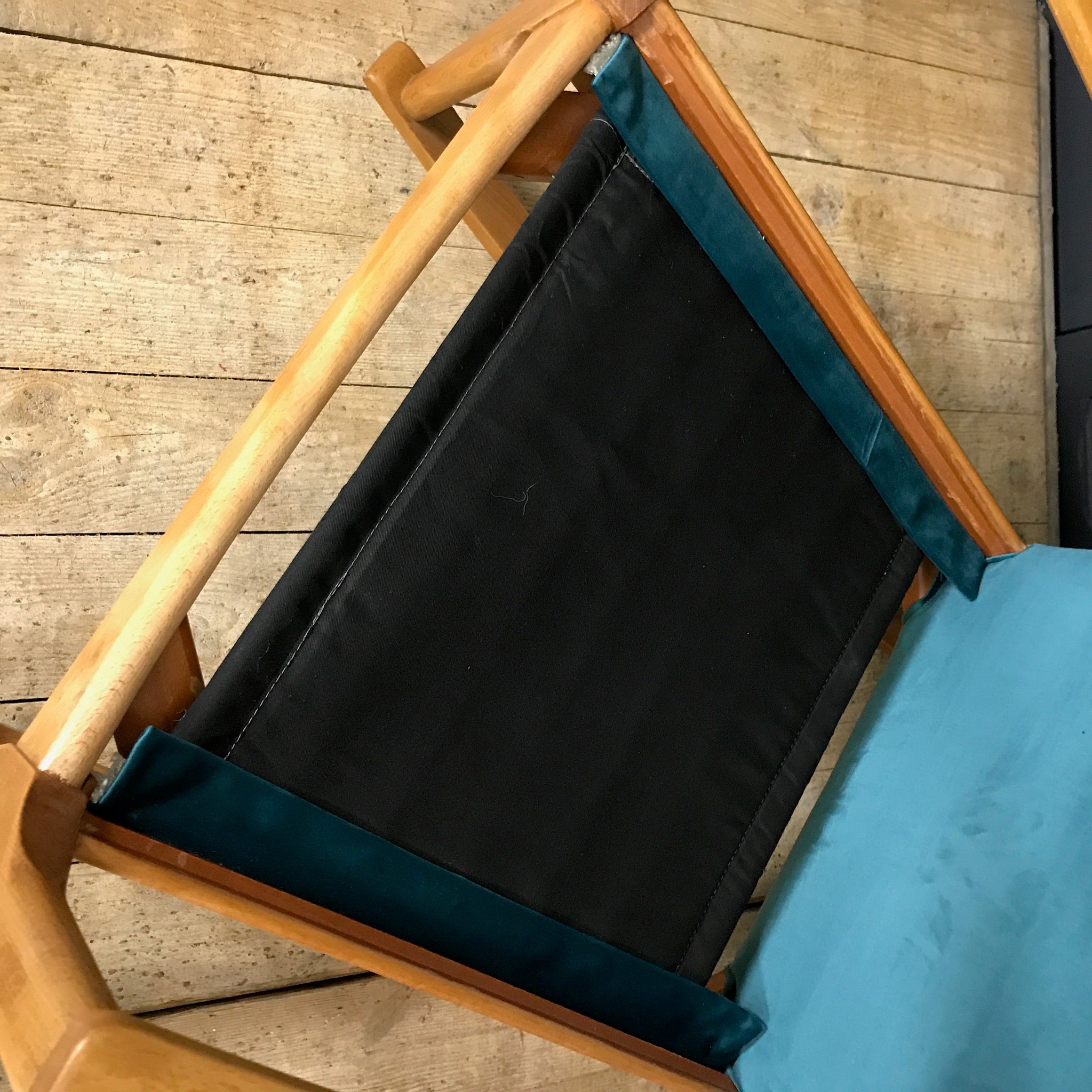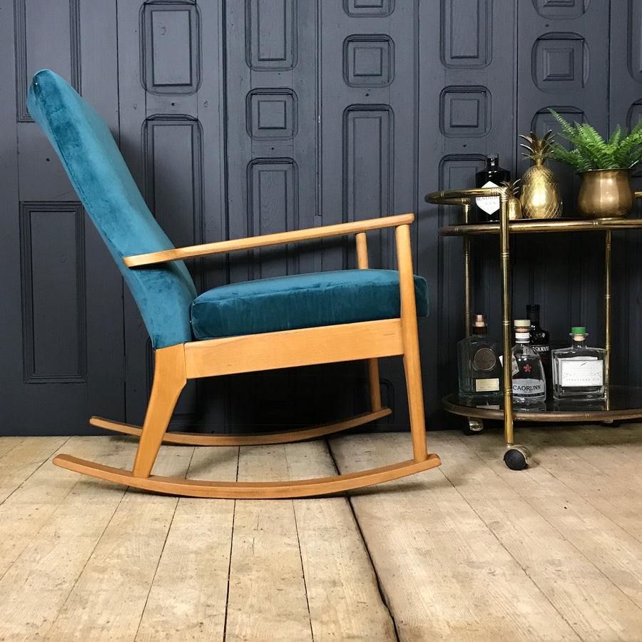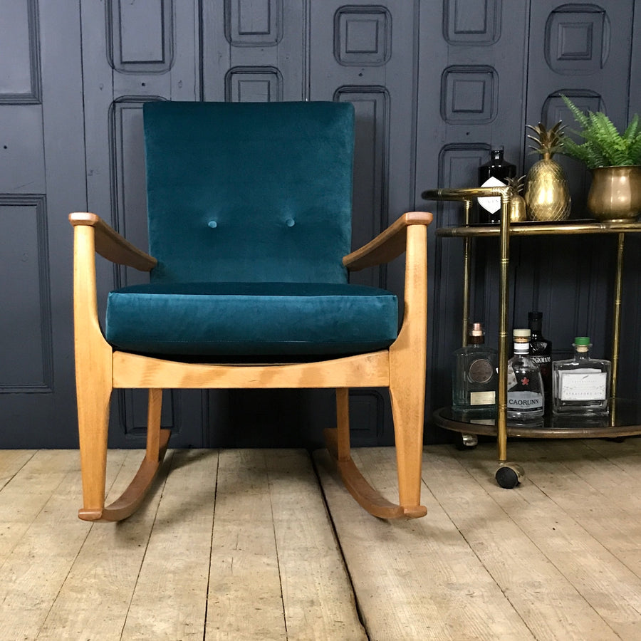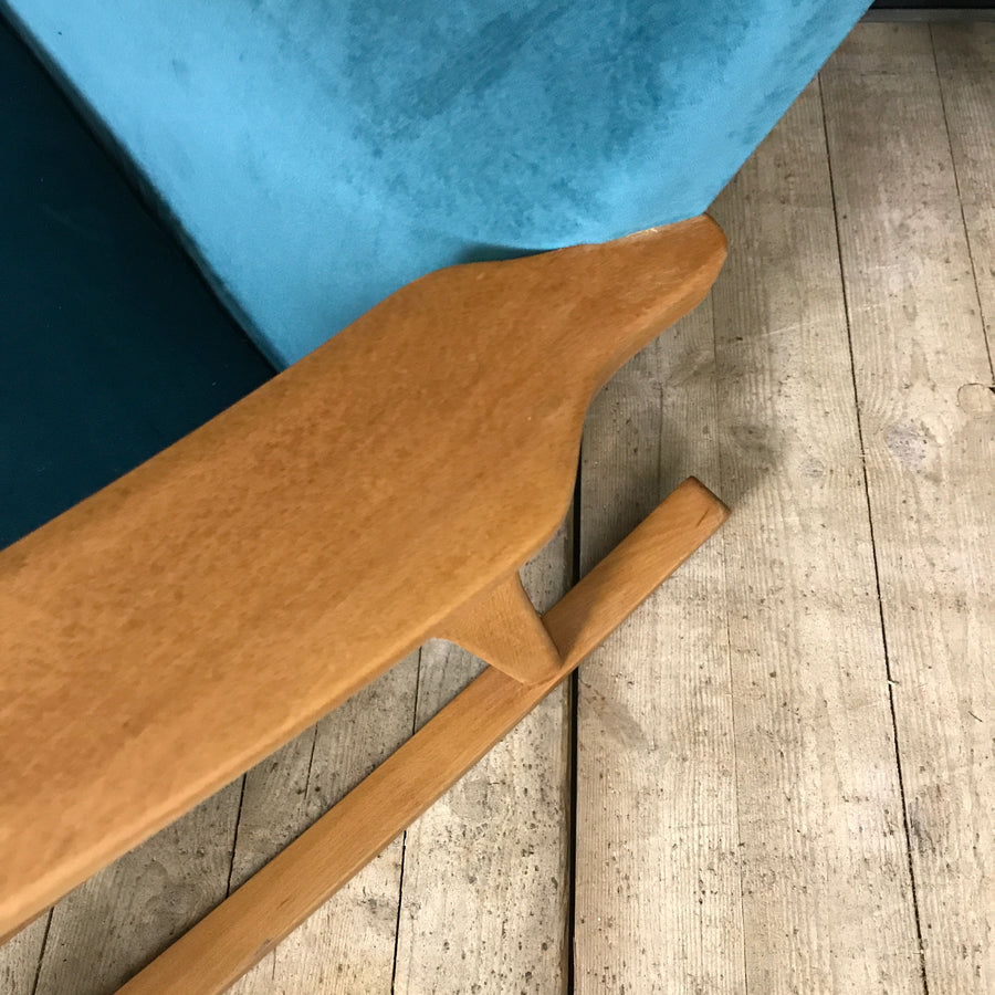 The solid beech framework has also been refinished which contrasts beautifully with the rich teal velvet.