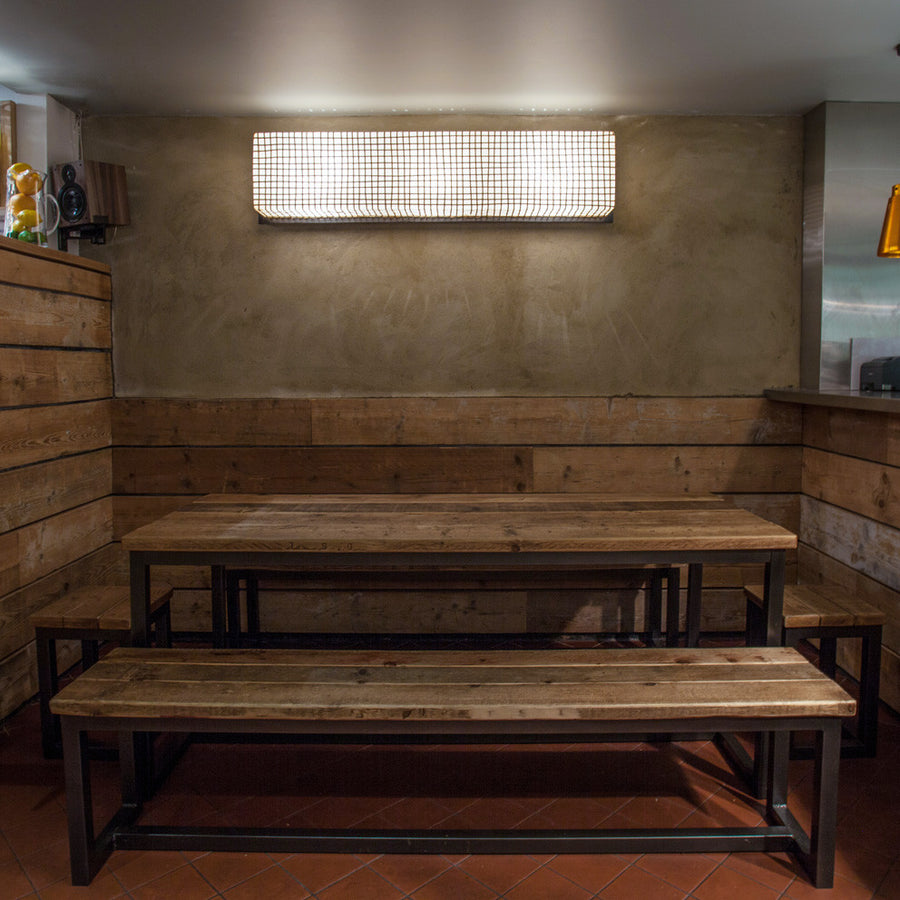 As fellow burger lovers we were thrilled to work with Honest Burgers and help them furnish two of their new London-based burger restaurants. They wanted a specific style of table and seating to fit an area of their new Tooting restaurant and the 'Harnall' handmade table complemented their Industrial interior perfectly. We produced a bespoke version of the 'Harnall' table, along with matching benches and stools to fit their space.