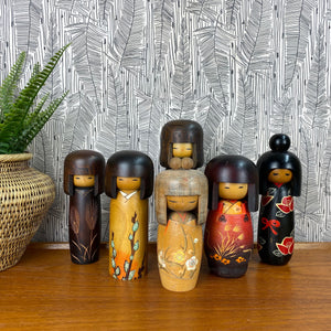 Kokeshi dolls were said to be guardians of children and keepers of their souls, watching over the children as they grew up. There are varying stories relating to their origin and purpose - some say they were given by talisman to ensure the healthy birth of a new child, others say they were given out to school children as reward dolls by teachers. However, others say they were given to mark the death of a child due to illness, miscarriage or famine - and that the soul of the child remains in the doll. We are not sure which we believe, but one thing we do know, is we love them and we've kept two for ourselves!