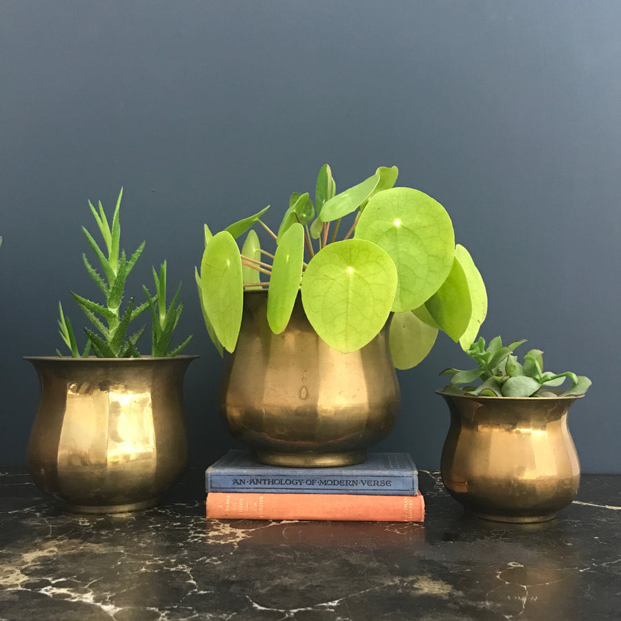 A stunning large vintage brass planter with lovely patina that only age can achieve. At the time of listing we have a small and medium version of similar planters that would look perfect grouped/styled together.