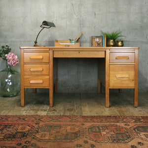 In great vintage condition, the oak has a striking patina. Lots of polished in marks which all add to the character of the desk. Please take a look at the photographs for more detail.