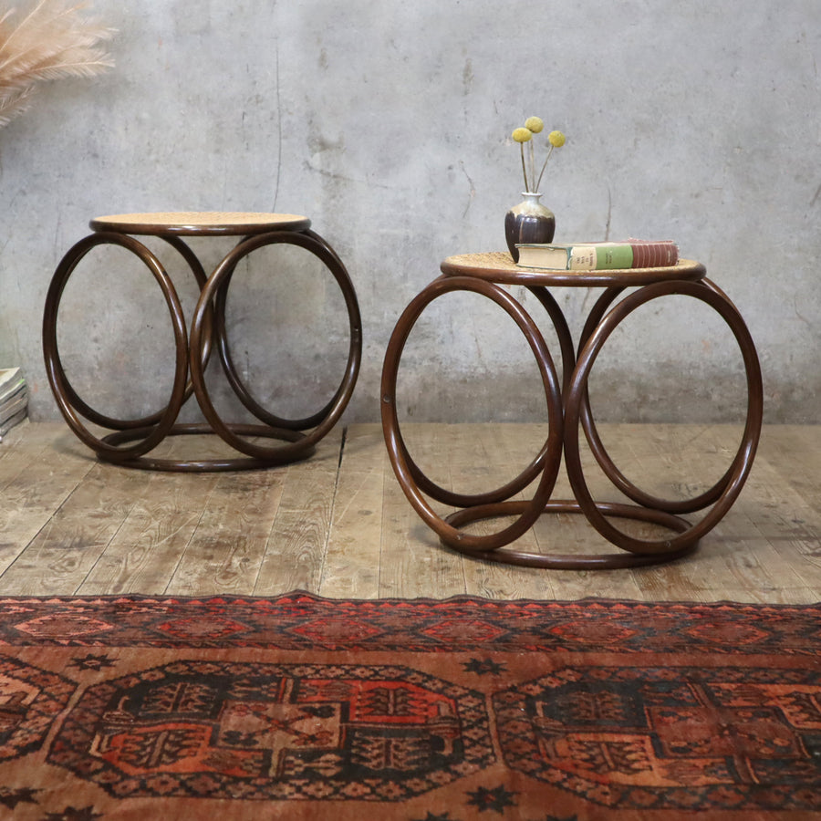 Mid Century Bentwood & Rattan Thonet Stool / Table - 1101ka