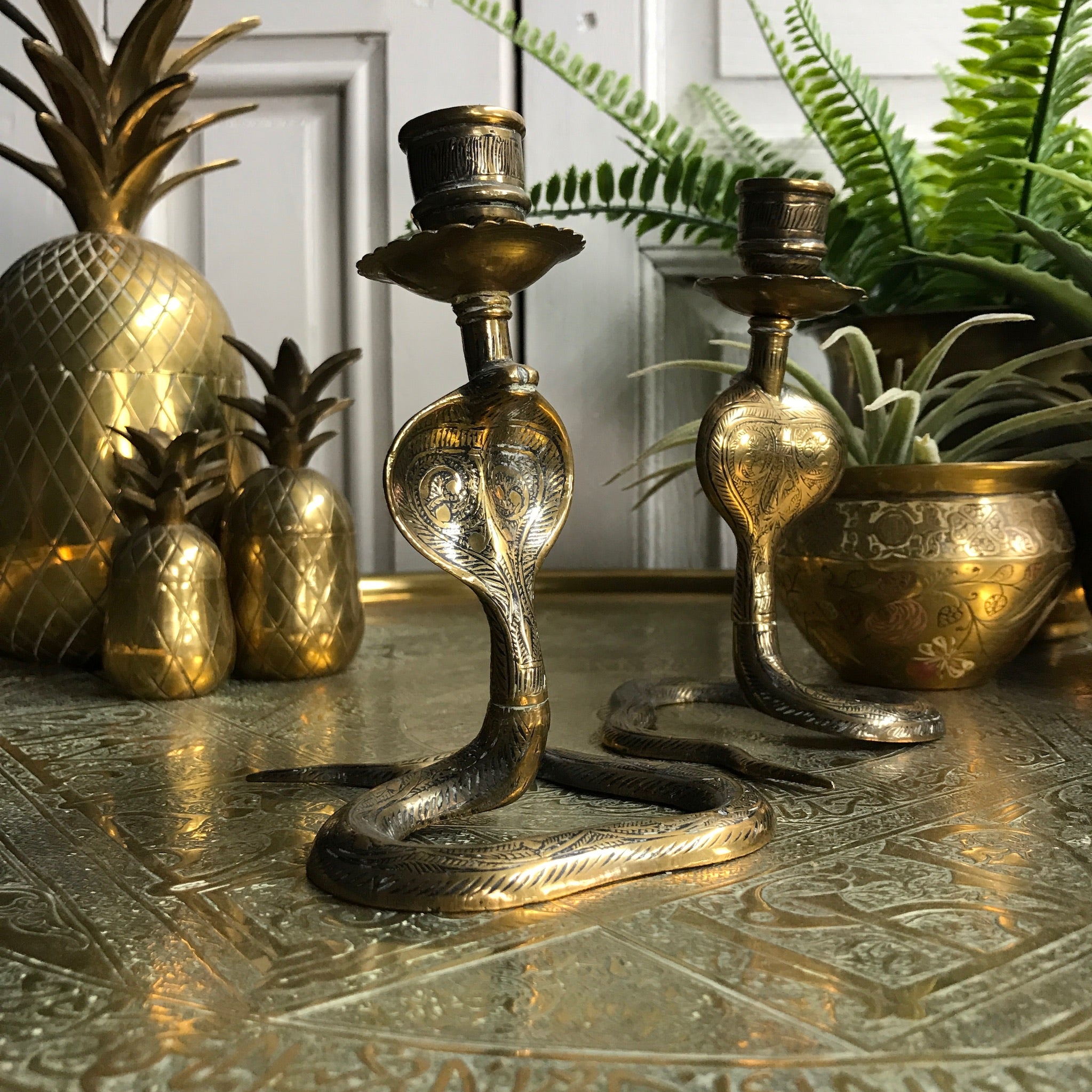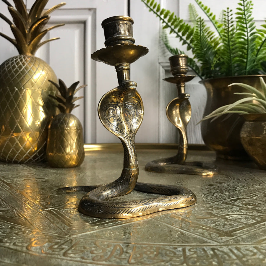 For us, brass cobras are the next brass pineapples, they have beautiful shape and detailing, and look stunniing with vintage furniture to create that 'eclectic' look. These pair of cobras can also be used as a centrepiece in your dining table to add subtle mood lighting for the evening.
