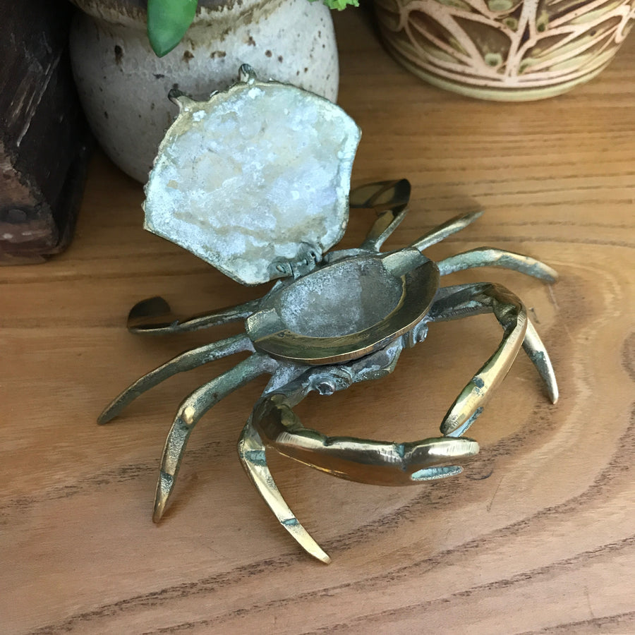 A rarely found Mid Century brass crab trinket box / ornament. This is a beautiful piece, and would look fantastic placed on a sideboard, on top of magazines on a coffee table, or perhaps on a dressing table to store the smallest jewellery items. Would look perfect styled in a home by the sea too!