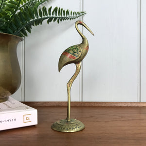 A beautiful Mid Century brass crane with stunning colour etched detailing.