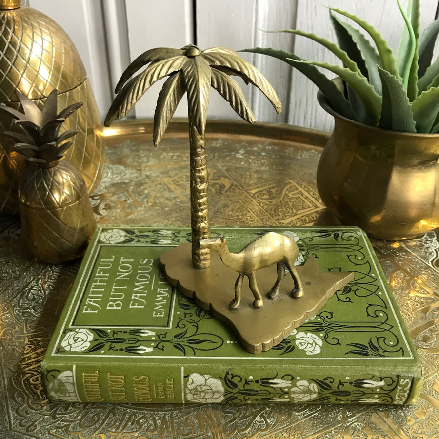 A rarely seen desert oasis scene in vintage brass - with a palm tree and camel. A beautiful and unique piece that will add a real touch of elegance to your interior styling.