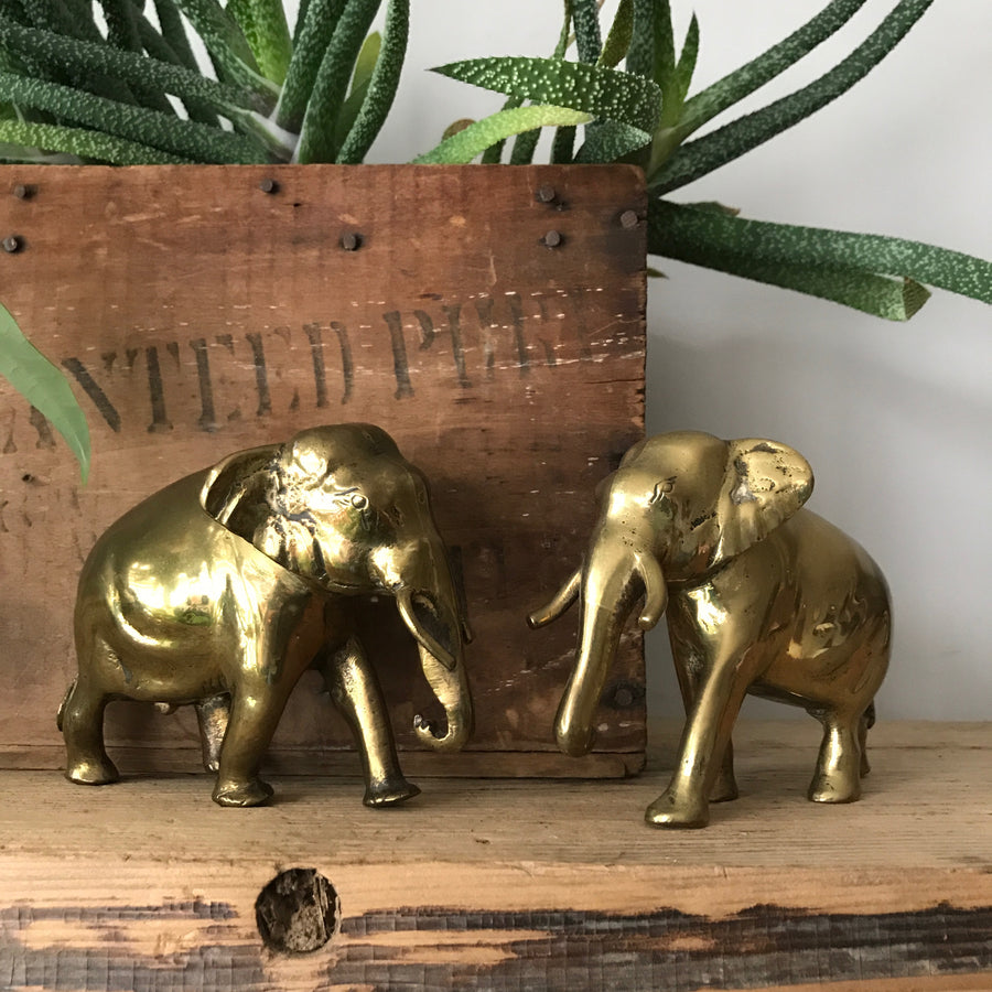 A lovely decorative pair of Mid Century brass elephants, the perfect accessory to place on your vintage furniture or shelf to add a bit of Hollywood Regency style!