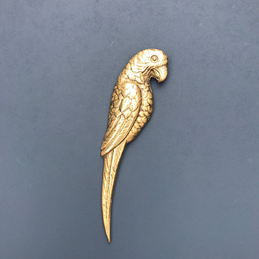 A stunning vintage brass parrot that can be wall mounted (includes a hanging loop on back) or placed against a wall/on a shelf. This decorative piece is the perfect accessory to enhance your sideboard or shelf styling - and adds a touch of Hollywood Regency glamour to your interiors!