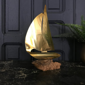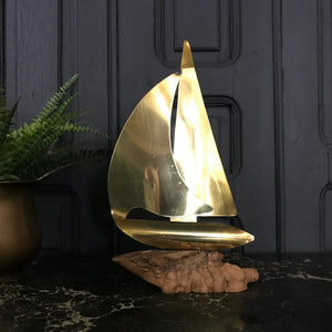 A stunning Mid Century brass sailing boat mounted on a natural wood base - a good size larger than the brass boats we usually source too!
