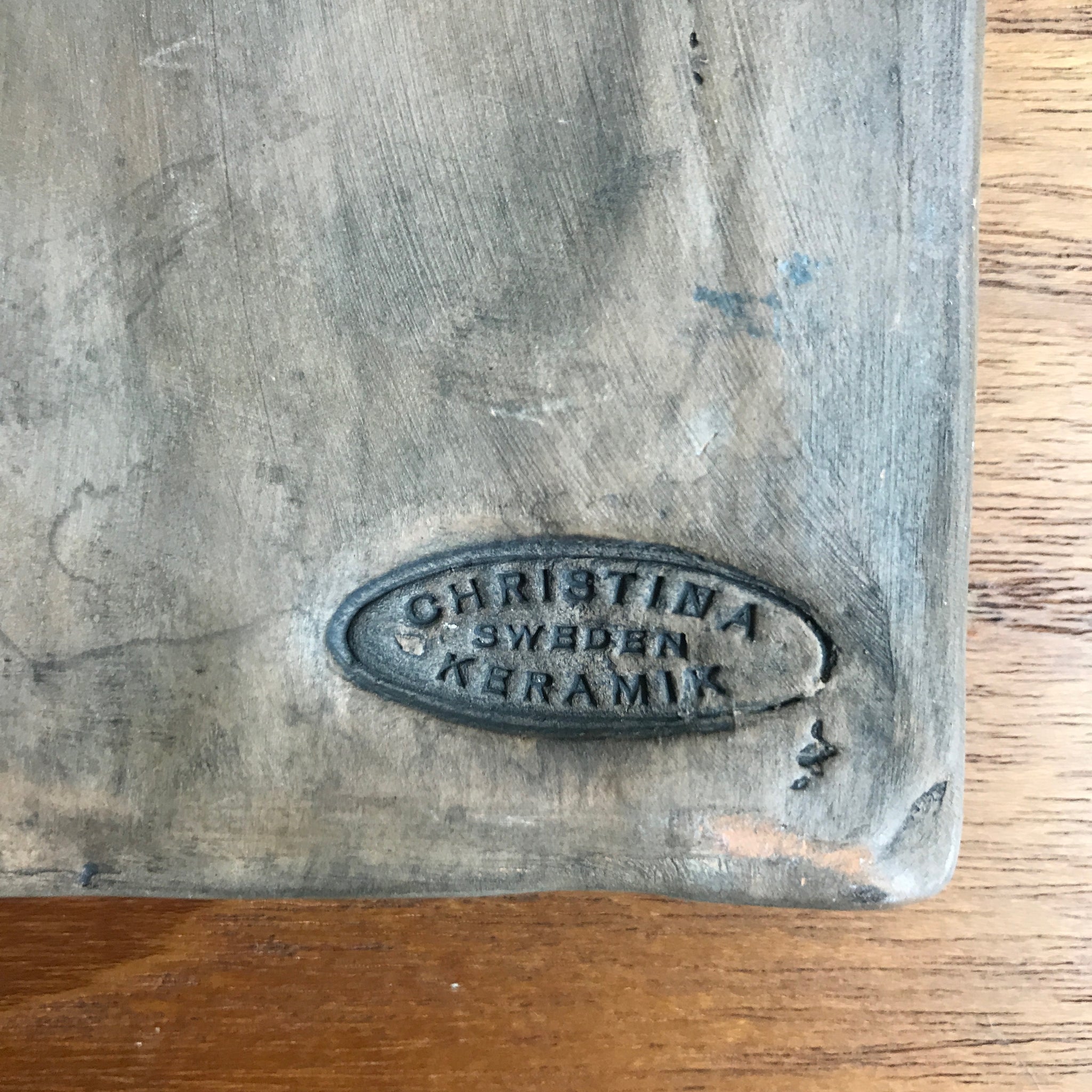 A beautifully delicate ceramic wall plaque designed in Sweden by Dagny Zachrisson for Christina Keramik, featuring stunning hand painted flowers and detailing.
