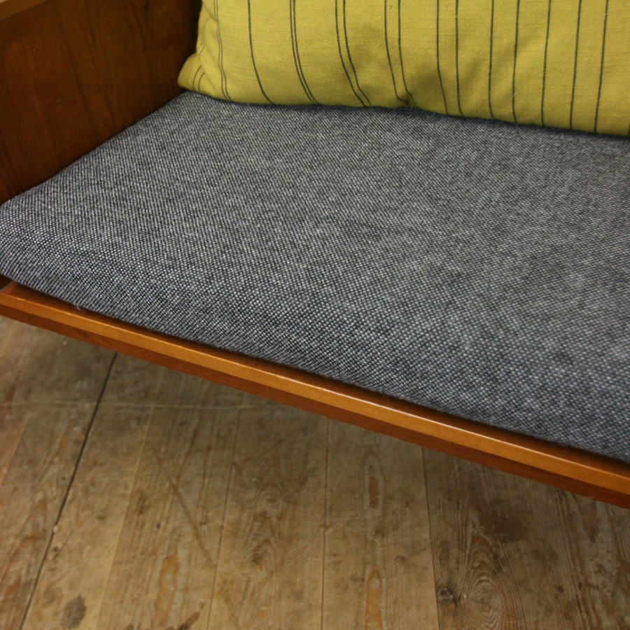 Fully restored framework with a brand new seat cushion which has been upholstered in a gorgeous charcoal tweed fabric. Please Note* The scatter cushion is not included in the sale