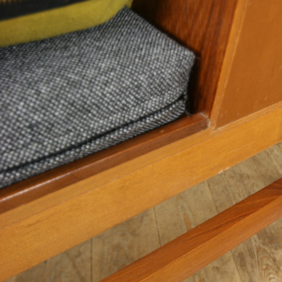 Lovely teak framework and pull out drawers making it very practical for storing keys, notebooks etc, great in hallways for a quick rest whilst taking your shoes off!