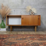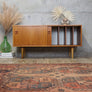 A Mid Century, Danish sliding door LP / Vinyl Media cabinet / Sideboard.