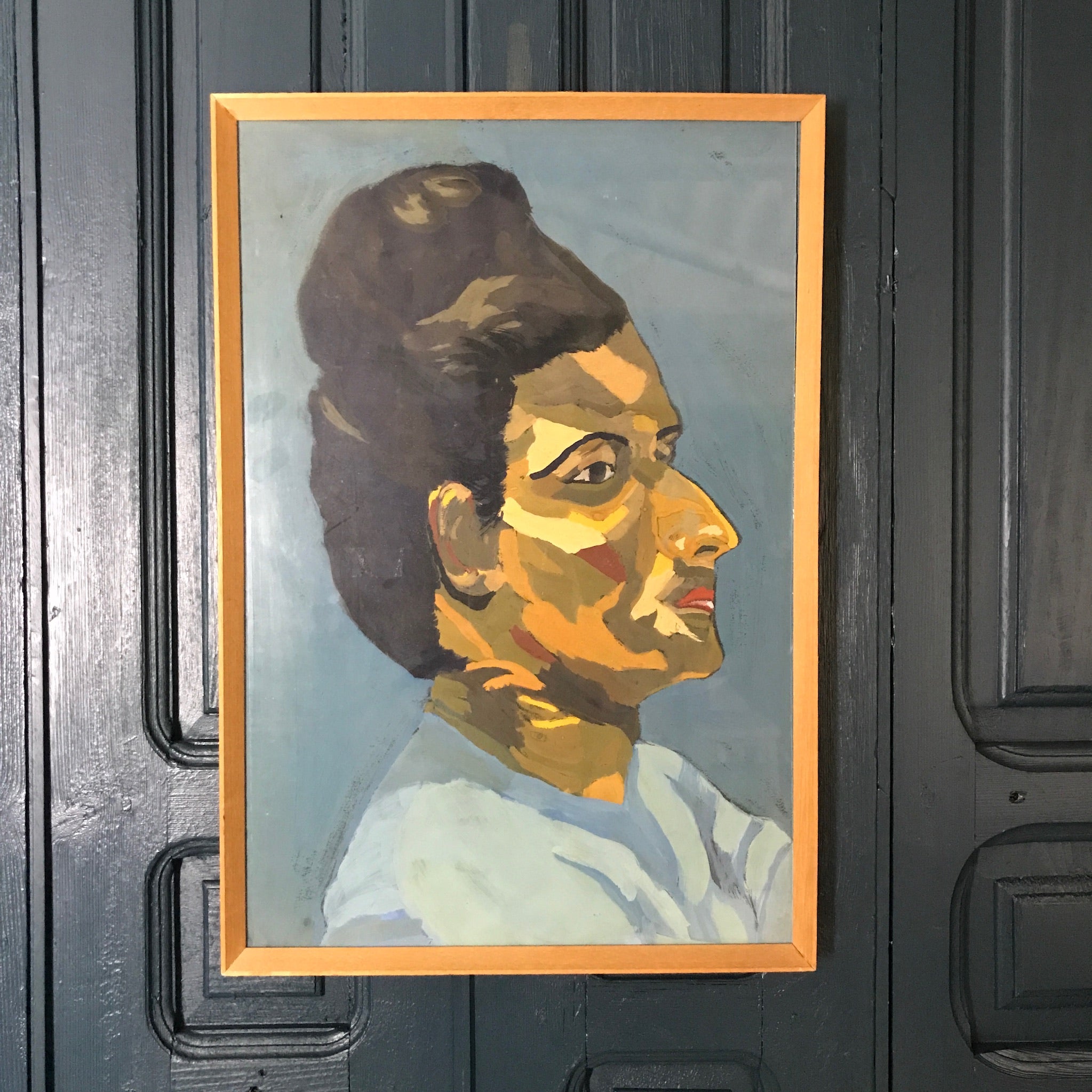 Mid Century hand painted portrait of a lady who we've name 'Annie', presented in its original vintage frame with glass.