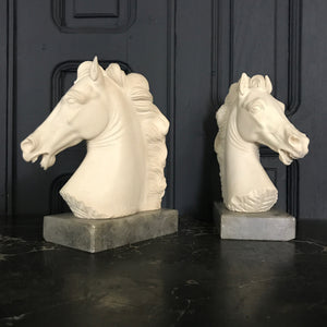The most stunning decorative pair of horse bookends by Arnaldo Giannelli - an Italian master sculptor. These Alabaster horse heads are beautifully sculptured and have been mounted onto grey marble bases, making them extremely heavy.