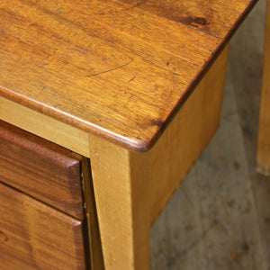 Features gorgeous, contrasting solid sapele (African hardwood) top and drawer fronts with beech legs and frame. A lovely piece with a true Mid Century aesthetic.