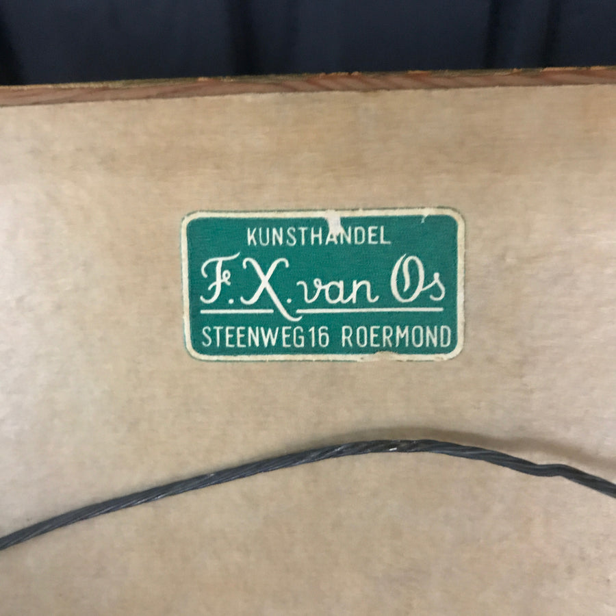 This is a unique piece of art and is in good vintage condition, displayed in its original off white frame without glass.
