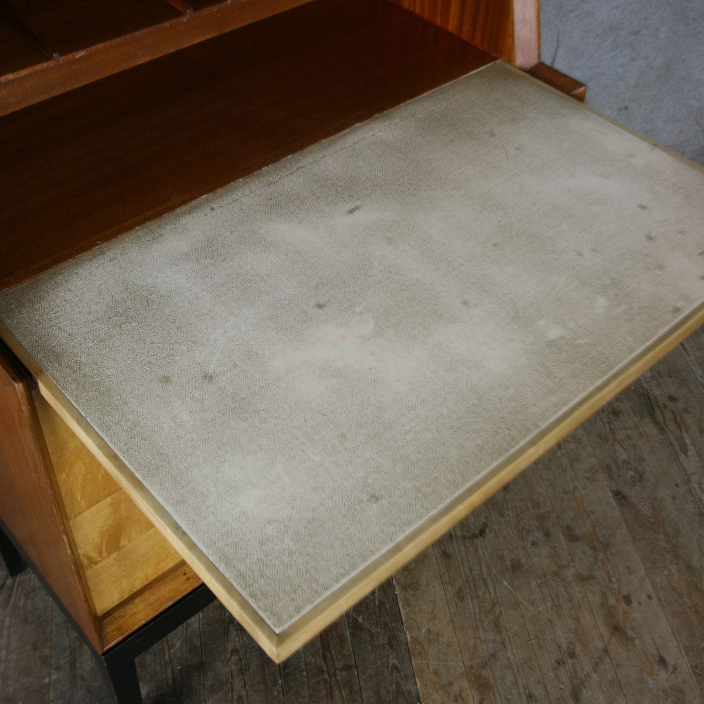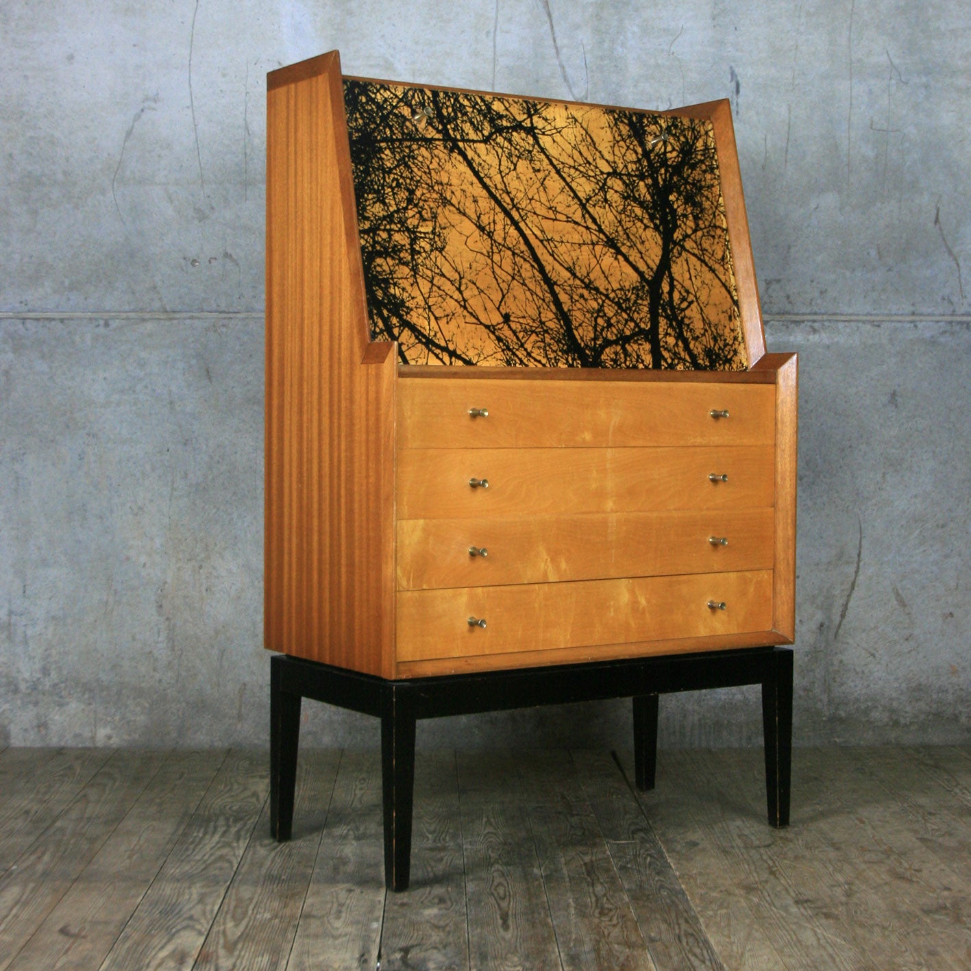 A stunning & unique 1950s bureau with original lithograph print to the front.