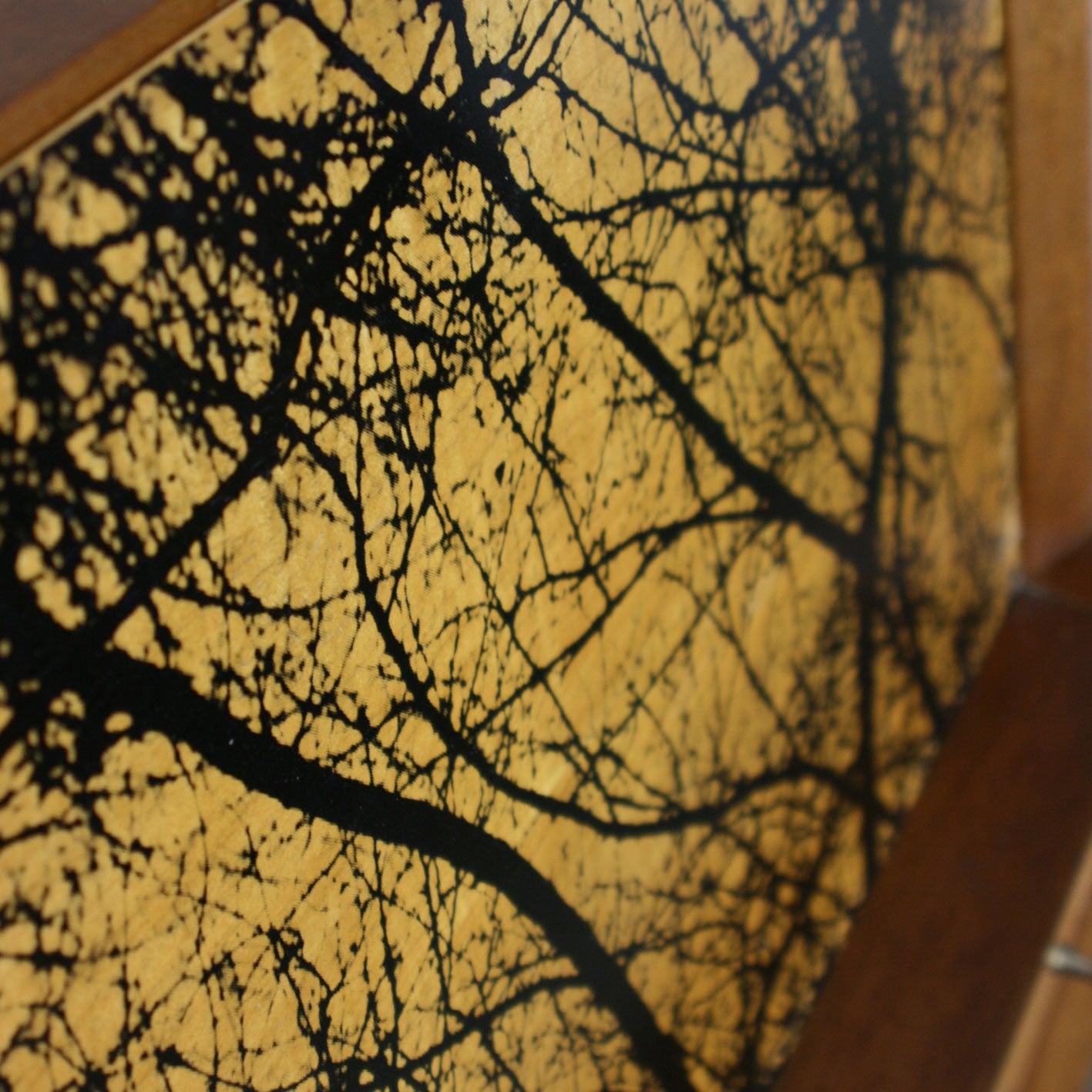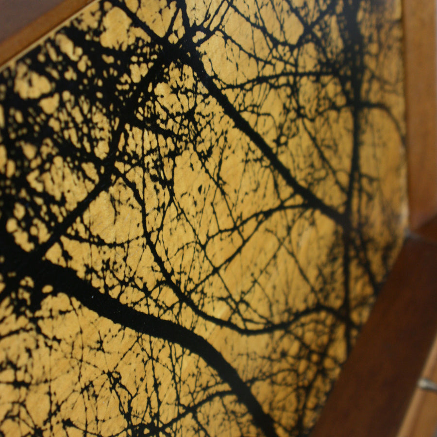 Designer & manufacturer is unknown reminiscent of the work of Robert & Dorothy Heritage (Dorothy pioneered the technique of Lithograph printing directly onto timbers)