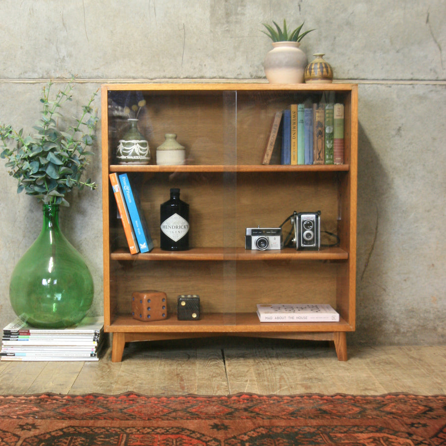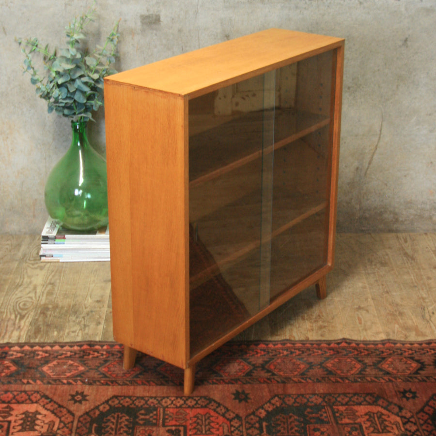 Mid Century Oak Glazed Display Cabinet / Bookcase – 1312c