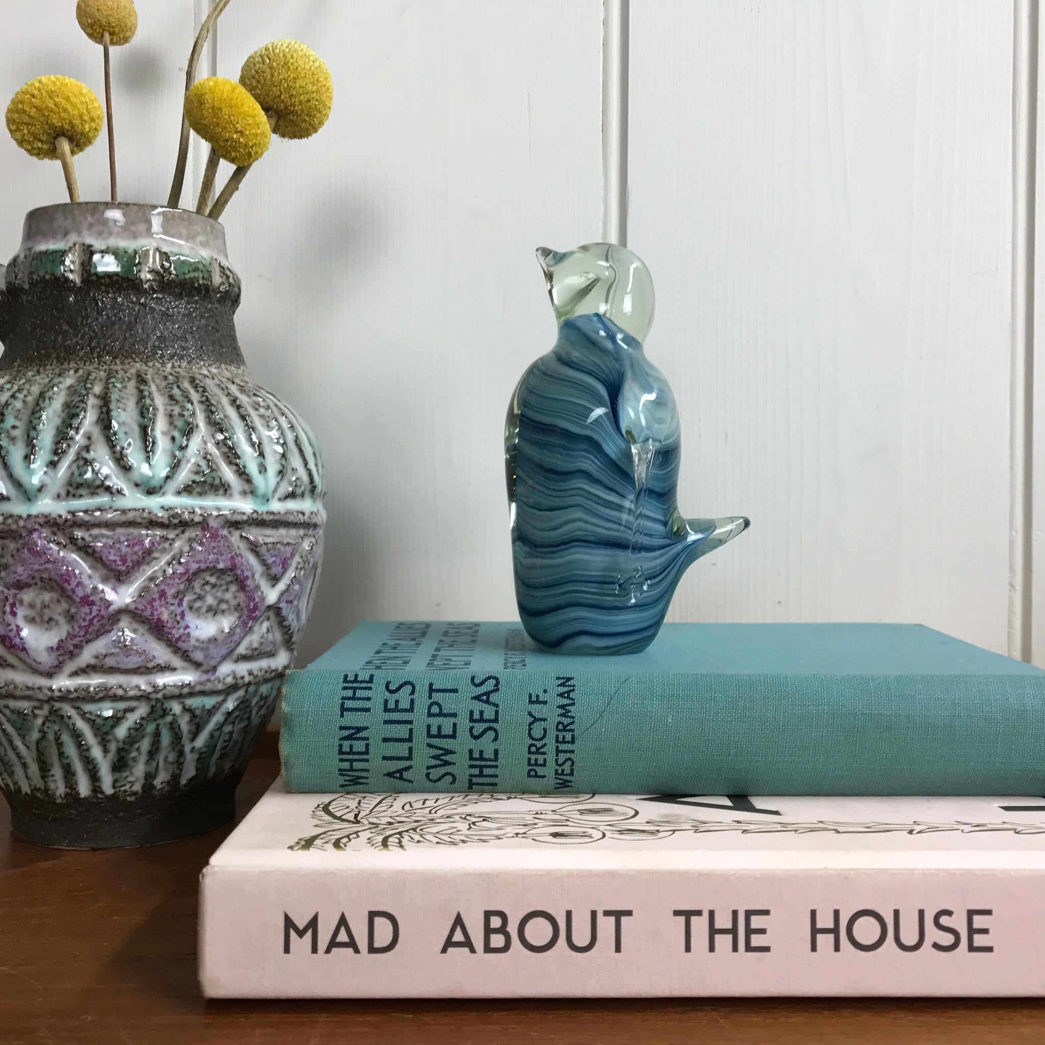 A vintage glass penguin paperweight/ornament in a beautiful pastel blue colour - the perfect accessory to add to your interior styling. Would also make a great gift!