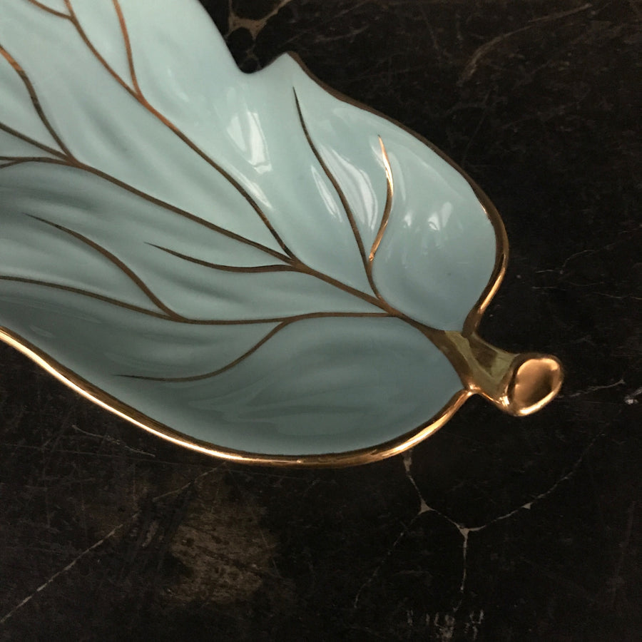 A Mid Century pastel blue and gold leaf dish by Carlton Ware - a beautiful piece to place on a piece of furniture or coffee table.