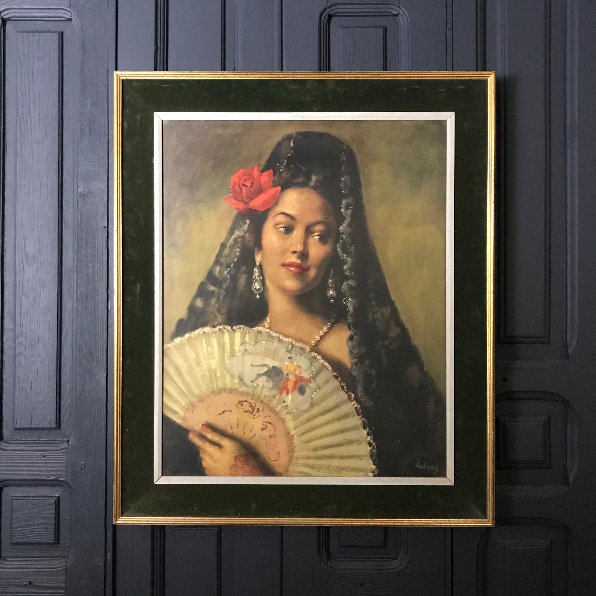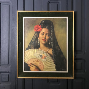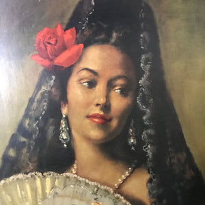 An original Mid Century print on board of a gorgeous Spanish flamenco lady by the renowned artist Gilroy (signed).