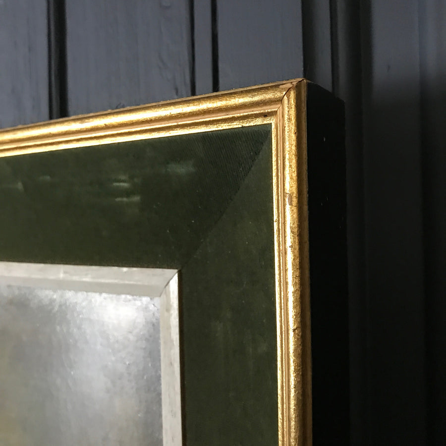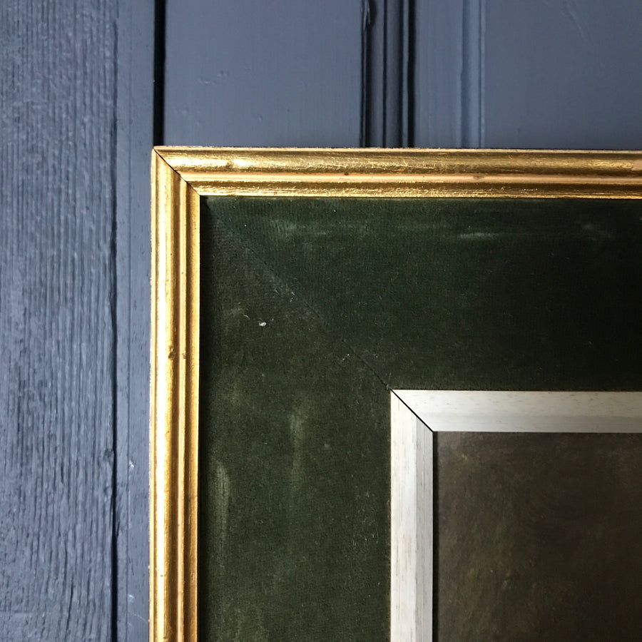 Displayed in its original gilt frame with green velvet mounting, without glass.