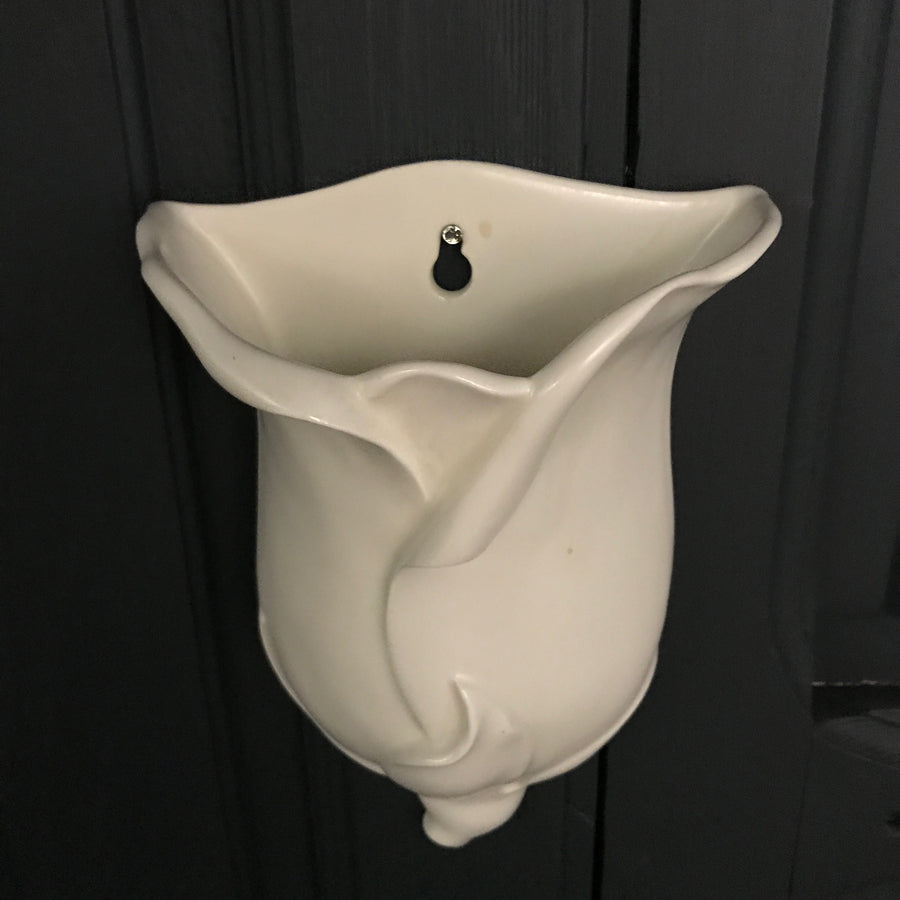 A beautiful Mid Century tulip wall vase in white. At the time of listing we have two available, if you would like a matching pair please select '2' from the quantity drop down above.