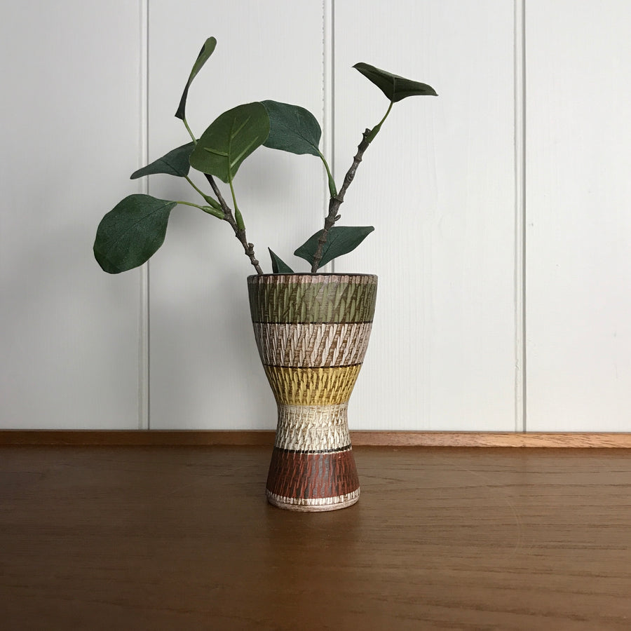 A West German vase by Dee Cee in lovely retro colours with a rope work pattern.