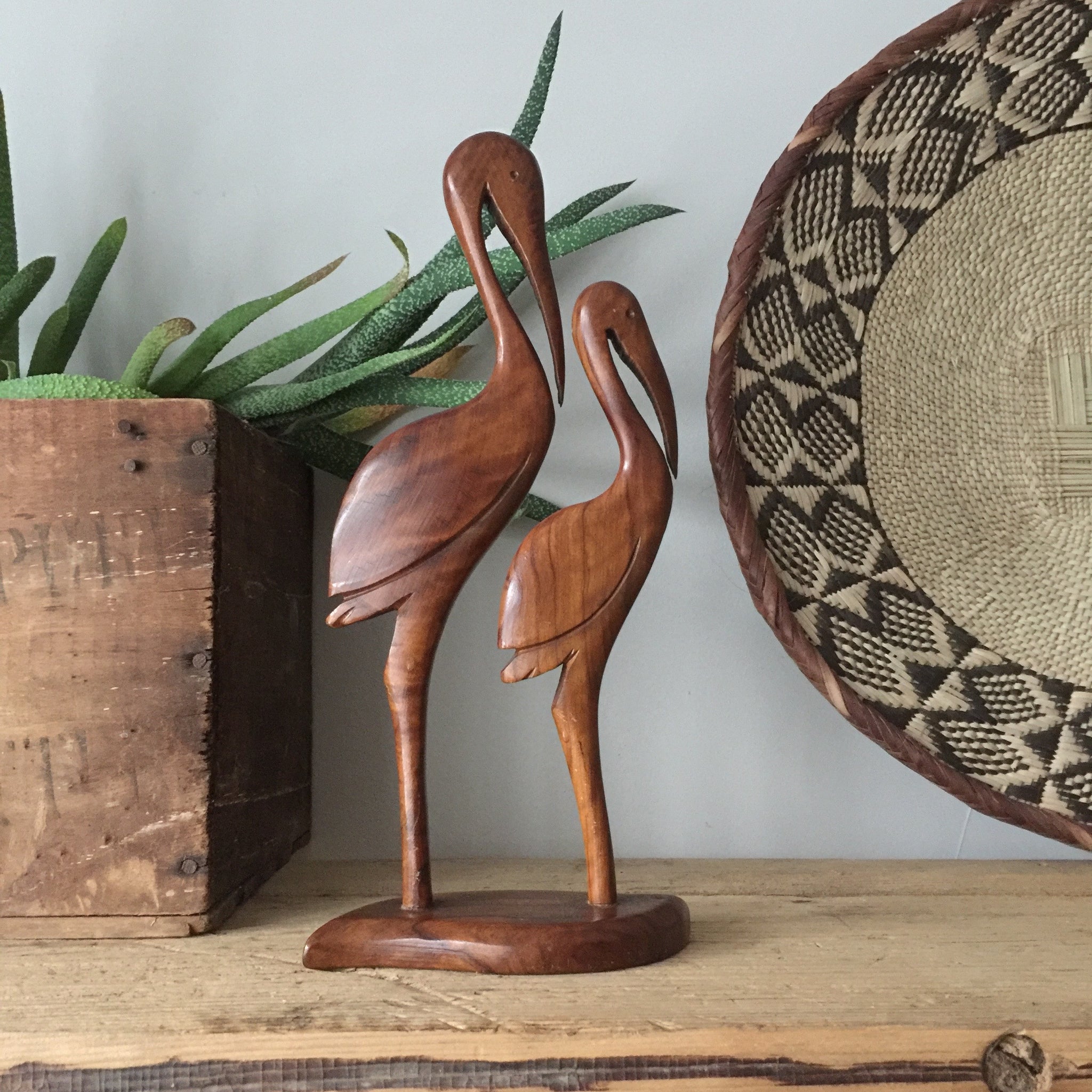 A striking wood carved ornament of two carved flamingos - who we've nick-named John & Yoko as they look so perfect together!