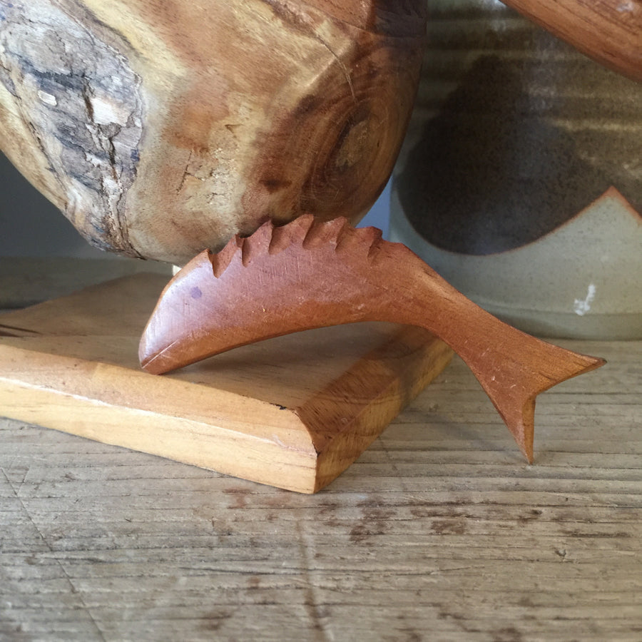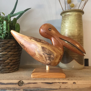 A striking ornamental vintage wooden carved pelican - with a freshly caught fish in its mouth - who we've fondly named Pedro and Nemo! The carved fish is removable - although we are not sure why you'd want to remove it, but there you go...