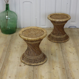 A lovely pair of vintage rattan side tables that would work equally well as occasional tables or bedsides.