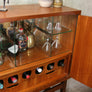The twin doors open out to reveal a large glazed serving area complete with removable shelves, bottle rack, pull out serving tray and two drawers at the bottom.