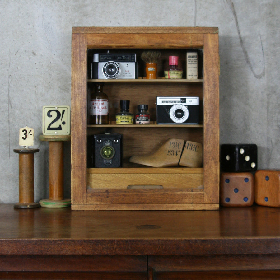 Small Vintage Oak Curiosities / Display / School Cabinet