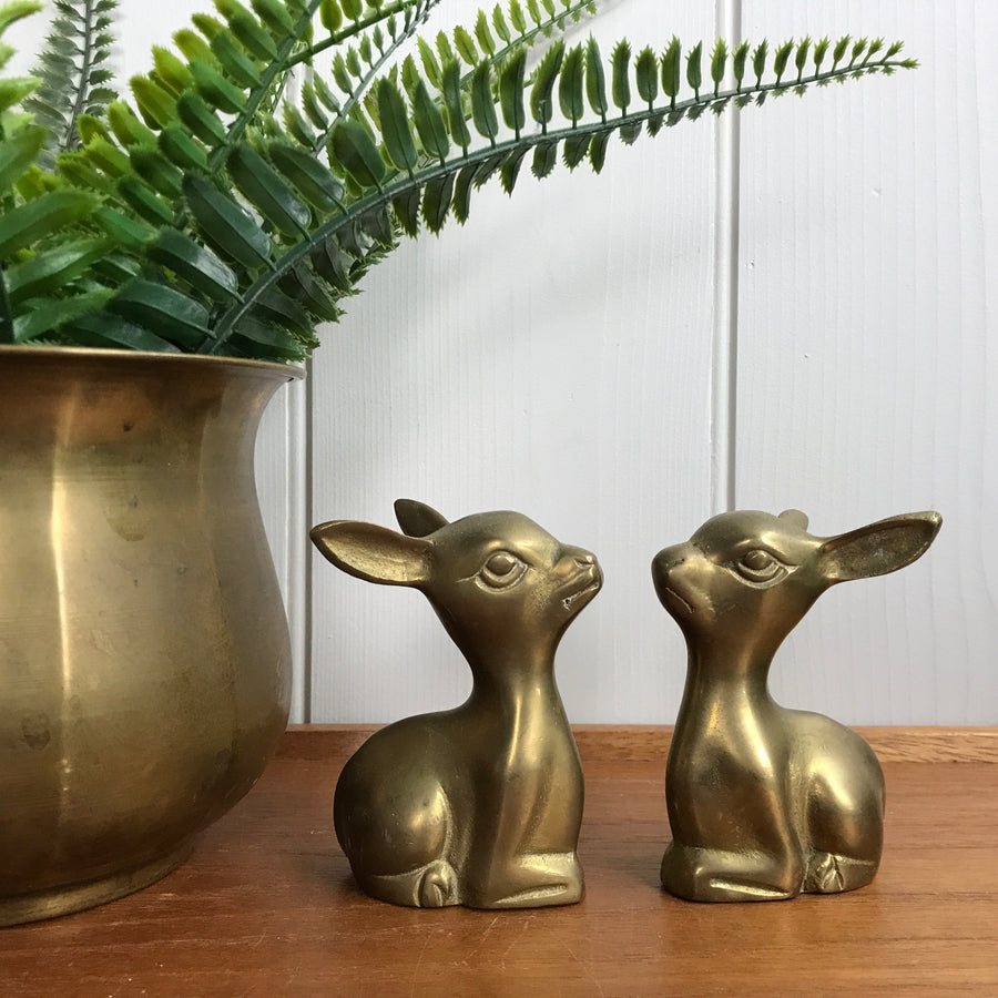 A cute pair of seated vintage brass deer - the perfect way to add a pop of gold to your interior styling.