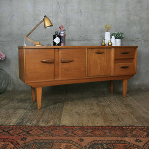 A cute little 1960's teak sideboard, with striking solid teak handles.