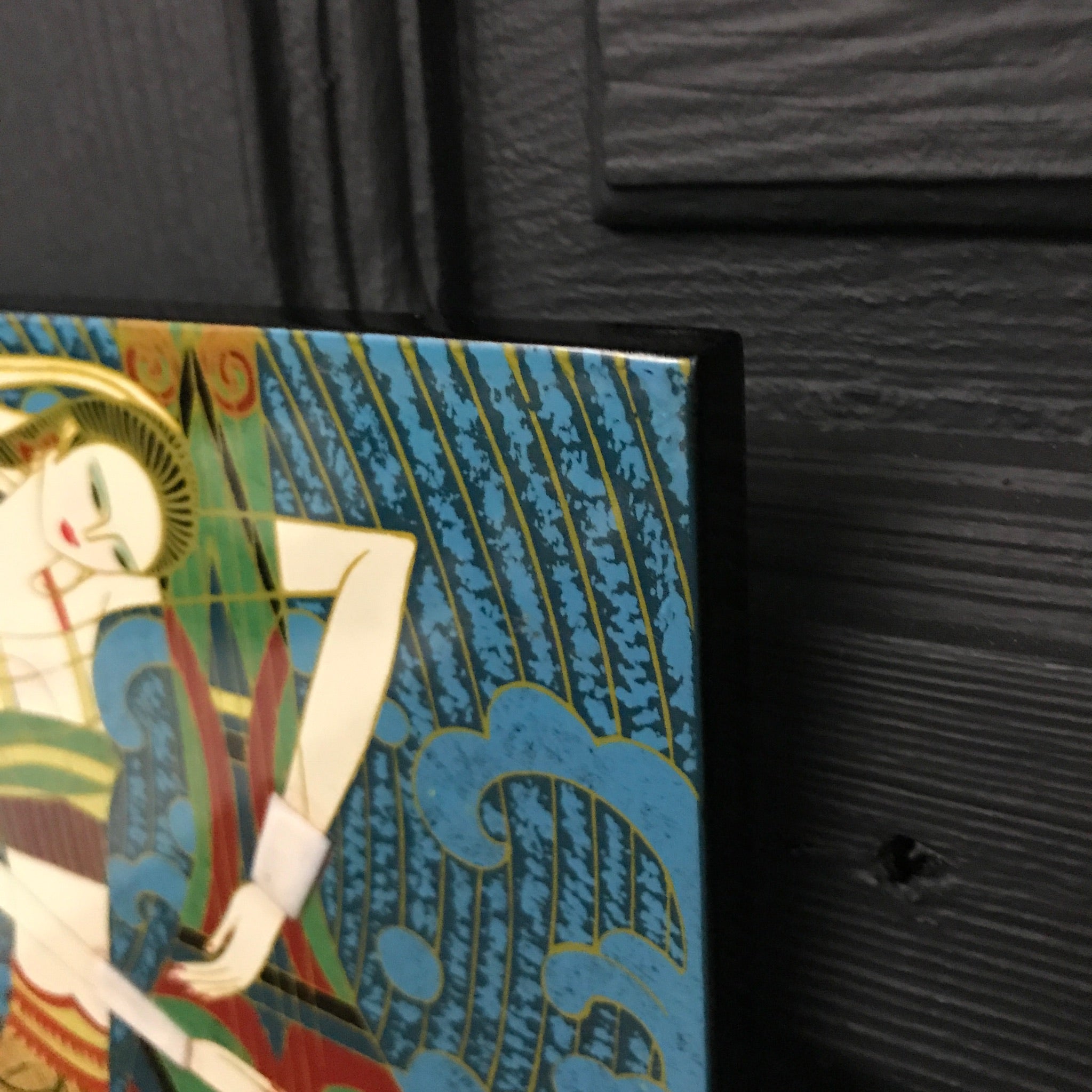 A vintage abstract wall plaque featuring stunning colours and detail - the cuffs on the lady are actually inlaid shell/mother of pearl.