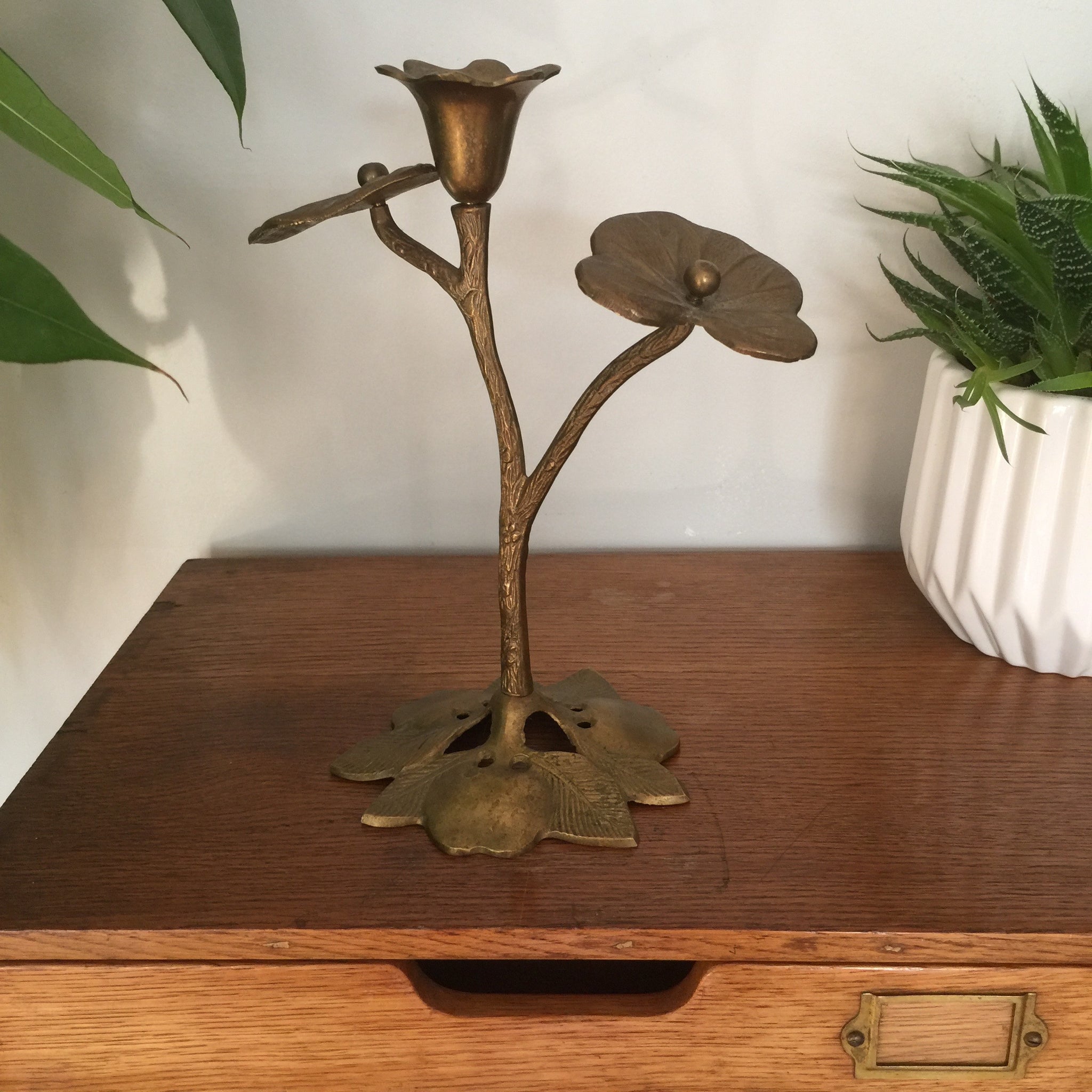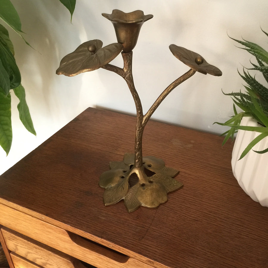 A beautiful brass flower candlestick with a leaf and flower design. This is a stunning piece, so delicate and detailed in it's design. It oozes quality and would make a fantastic piece to add to your interior styling.